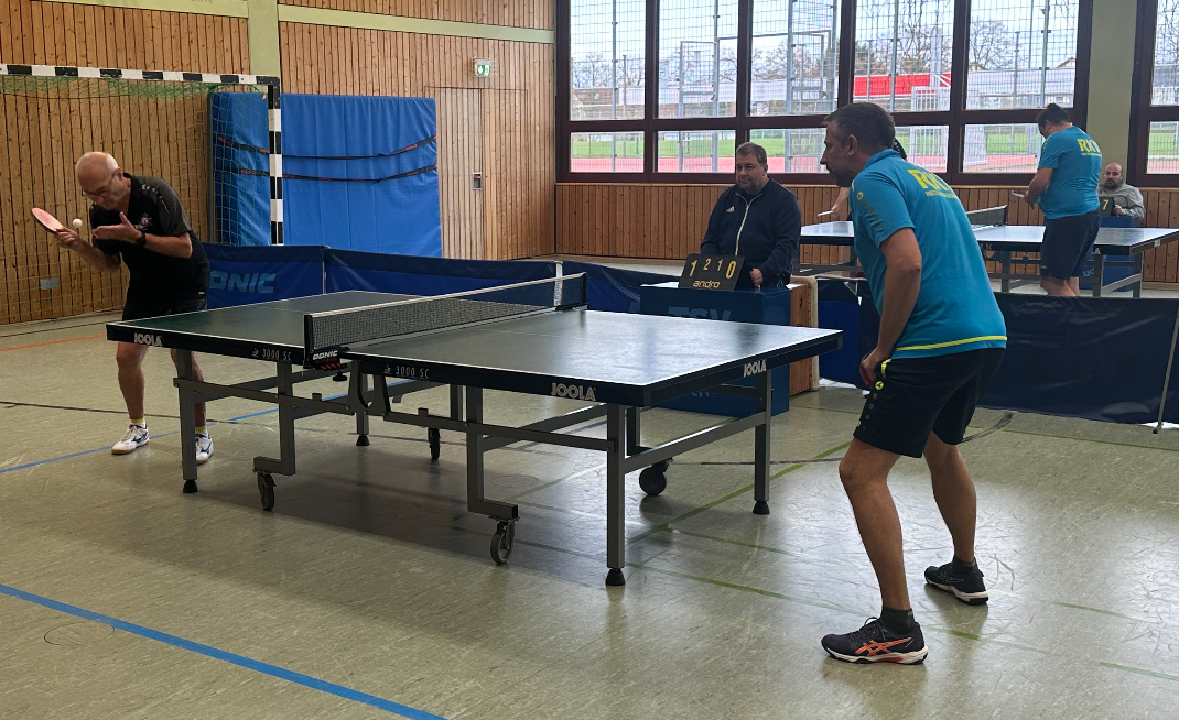 Nach den Doppeln war schon deutlich, hier werden auch die Einzel kein Selbstläufer. Als erstes Harald gegen die Nr. 2. Fast wie erwartet brauchten die Helden fünf Sätze, aber die Punkte waren futsch. Nun sollte Ralf das Ruder rumreißen. Gegen die Nr.1 bekam Ralf nur im zweiten Satz den Ball einigermaßen in den Griff. In drei Sätzen war das Thema durch. Im mittleren Paar, sollten nun Siegfried und Camillo die Sonne aufgehen lassen. In beiden Spielen war das Glück nicht auf unserer Seite. Zweimal wurde in fünf Sätzen verloren. Das hintere Paar mit Hüseyin und Martin sahen wohl schon das Elend kommen. Es kam eine kleine Überraschung und Hüseyin und Martin waren davon überzeugt, dass jetzt Punkte gesammelt werden. Unsere Nr.5 und Nr.6 gewannen ihre Spiele, super! Nun stand es 3:6 und es gab wieder Luft nach oben.