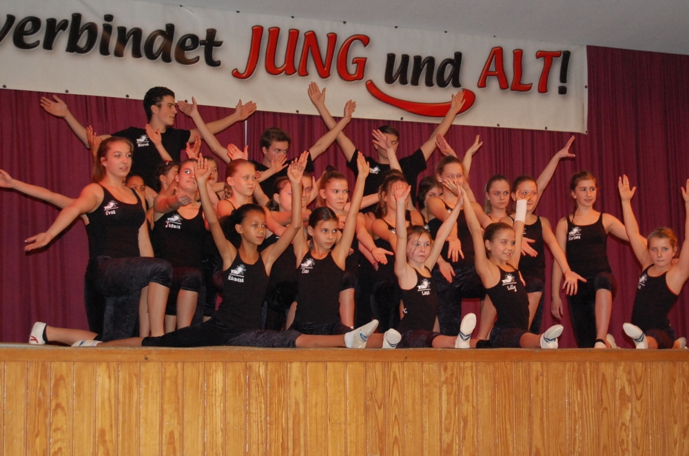 Die beiden Turngruppen der Frauen Lady-Fit und Power-Fit machten ihrem Namen alle Ehre. Sie begeisterten mit einer „Lightdance“ Steppaerobic. Dabei wurden Lichteffekte der besonderen Art erlebt da die Akteurinnen ganz in schwarz gekleidet nur durch die Leuchtbänder um Hand- und Fußgelenken sichtbar wurden. Mit fetziger Musik zeigten die Frauen, wie man sich mit dem Aerobic Stepper fit halten kann. Auch hier gab es großen Applaus und das Publikum forderte eine Zugabe.
