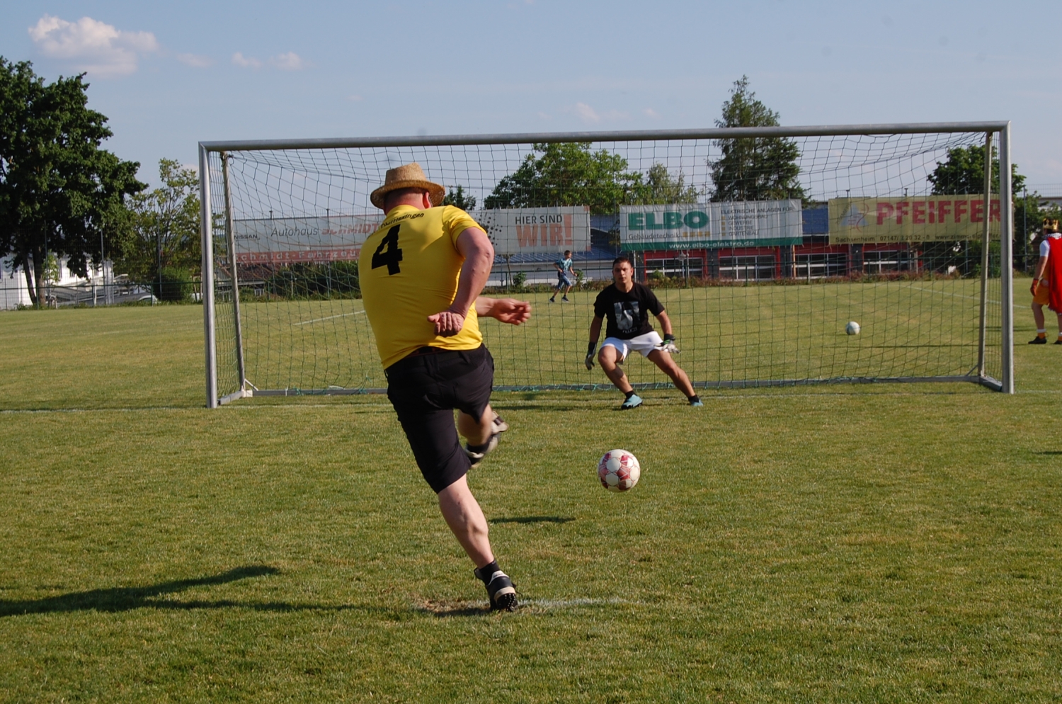 Das Elfmeterturnier am Freitag mit 28 teilnehmenden Mannschaften war wieder ein voller Erfolg: Einfallsreiche und ausgefallene Kostüme, spannende Elfmetervergleiche, reine Frauenteams, gemischte Mannschaften, jung und alt – und sichtlich Spaß bei den Akteuren und Zuschauern.