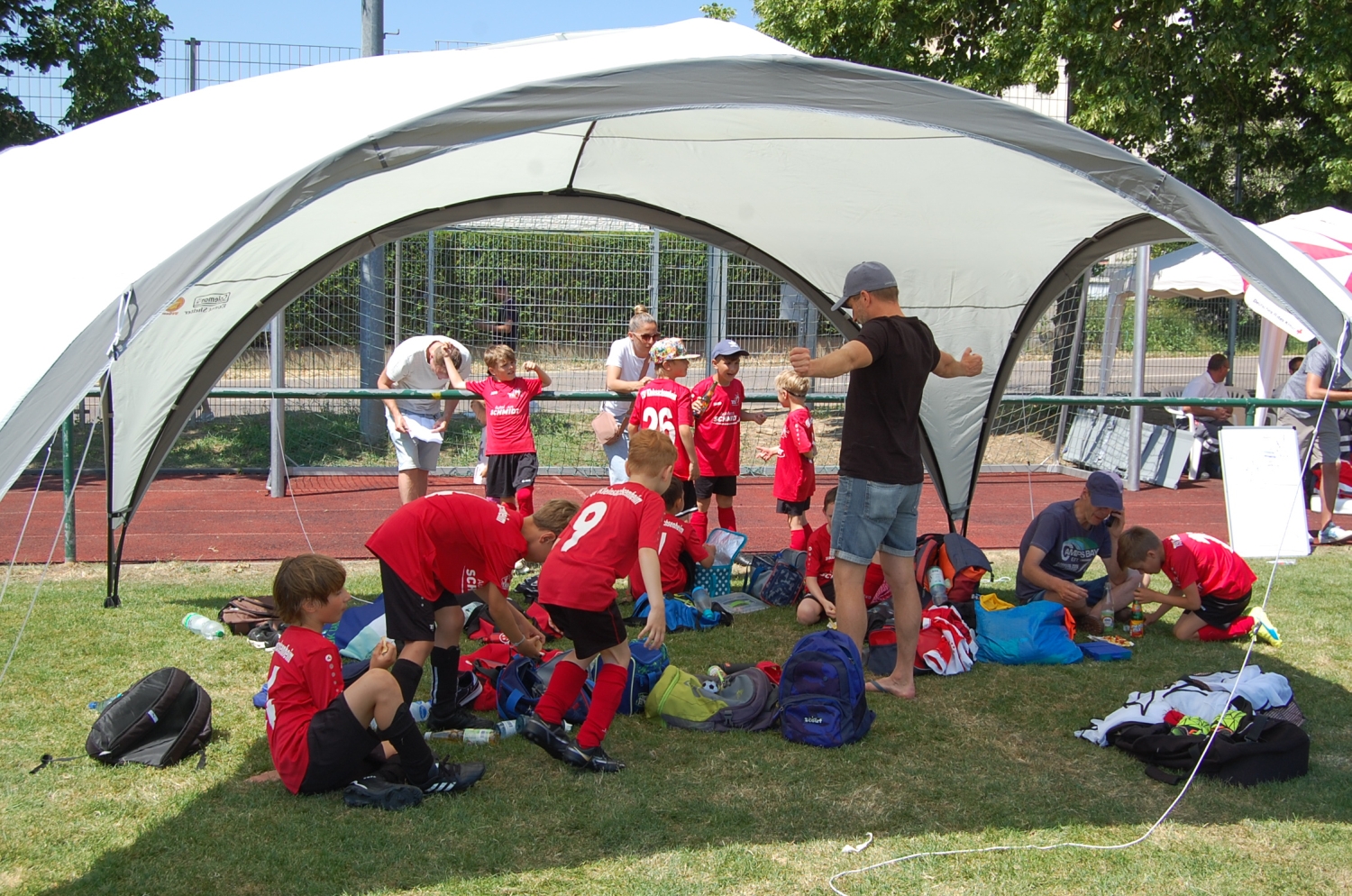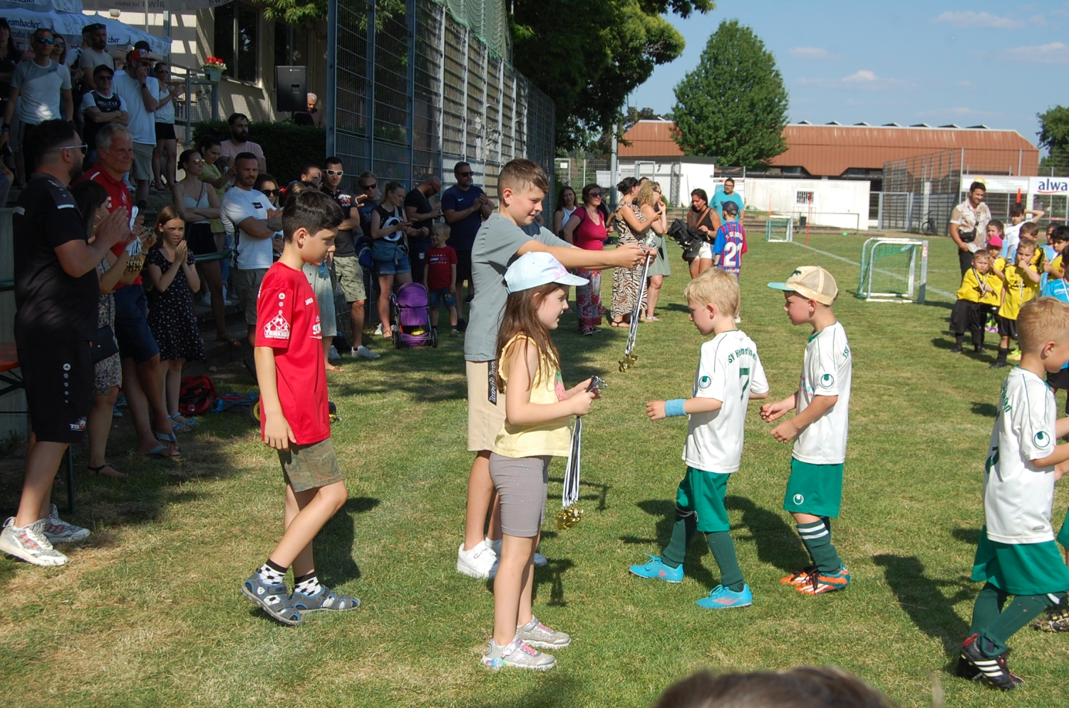 Bei bestem Wetter fanden dann am Sonntag noch Spieltage für die insgesamt 50 Teams der F-Junioren und Bambini statt. Herrlich mit anzusehen wie die Teams trotz der hohen Temperaturen eifrig bei der Sache waren und die Spiele auch ohne Unterstützung durch Schiedsrichter allesamt fair ausgetragen wurden. Da alle teilnehmenden Spieler auch eine Medaille oder einen Pokal erhielten gab es beim diesjährigen ELBO-Cup nur Gewinner.