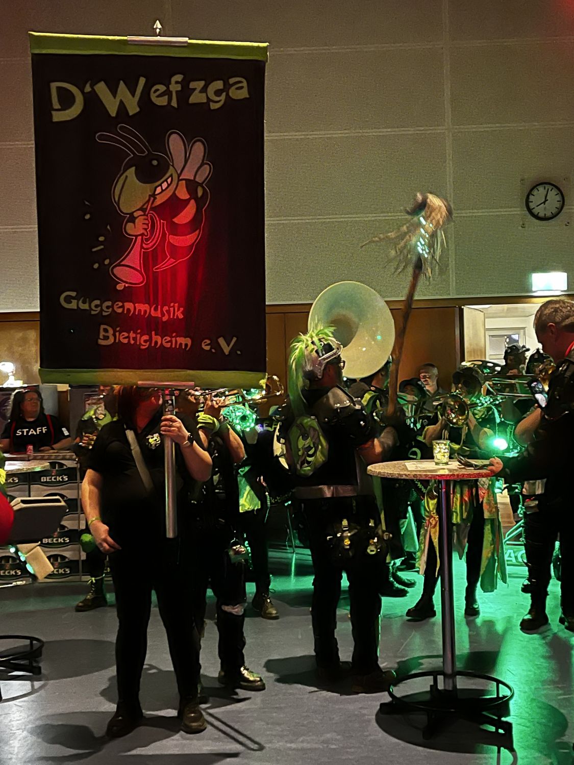 Höhepunkte waren einmal mehr der Auftritt der Bietigheimer Wefzga, die mit ihrer Guggenmusik die Halle zum Kochen brachten. Die Tanzfläche war immer gut besucht beim "Freestyle", Polonaise und aktuellen Partyhits. Weiterer Höhepunkt war der Besuch der Narrengruppe "Steirigel-Goischter" aus Berkheim bei Esslingen.