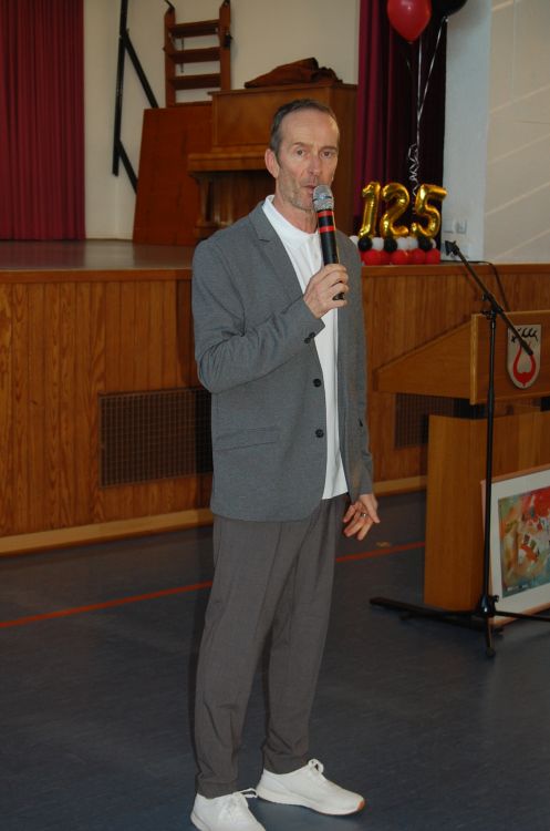 Bürgermeister Holger Albrich gestand in seinem Grußwort, dass er in seiner Kindheit zunächst negative Erfahrungen mit dem TSV gemacht hatte, da es für sein Fußballteam vom Lokalrivalen südlich der Metter meist Niederlagen gegen unseren Kleinsachsenheimer Nachwuchs gab. Spätestens seit seiner Wahl zum Sachsenheimer Bürgermeister nimmt er den Verein jedoch sehr positiv wahr. Er erinnerte an einige Meilensteine, wie den Bau der Mehrzweckhalle oder der Einweihung der Sportanlagen mit dem Spiel gegen den VfB Stuttgart. Das Sportgelände soll in naher Zukunft um eine Pumptrack-Anlage erweitert werden. Gefreut habe ihn auch das Funktionieren der bestehenden Spielgemeinschaft im Fußball mit den Sportfreunden Großsachsenheim im Aktiven- und Jugendbereich. Als „wichtige Institution für die Stadt“ brachte er auch eine finanzielle Spende der Stadt und zwei Flaschen Stadtwein mit.