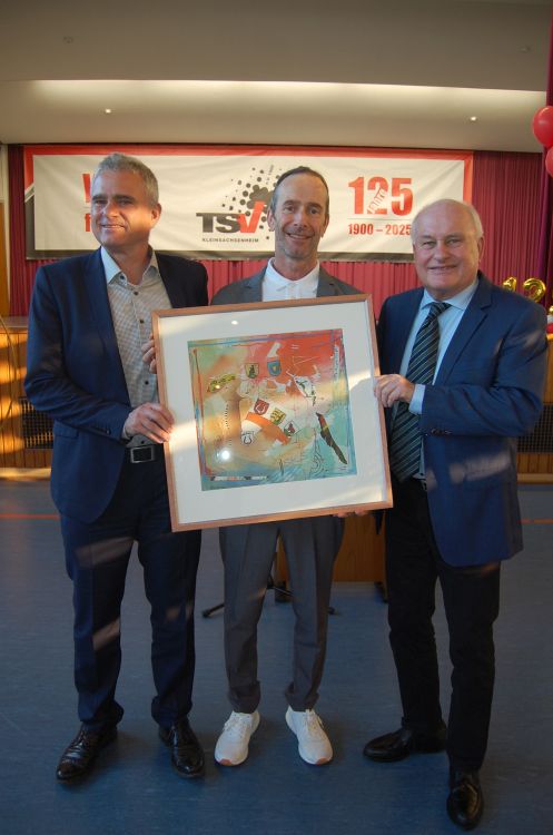 Der langjährige Vorsitzende der Sport- und Kulturgemeinschaft Sachsenheim, Heiner Bierbrodt, bedankte sich für die 35jährige fruchtbare Zusammenarbeit mit dem TSV. Als Geschenk des SKS übergab unser ehemaliger Vorsitzender ein Bild der Kleinsachsenheimer Künstlerin Erika Schock und wünschte seinem TSV für die Zukunft alles Gute.