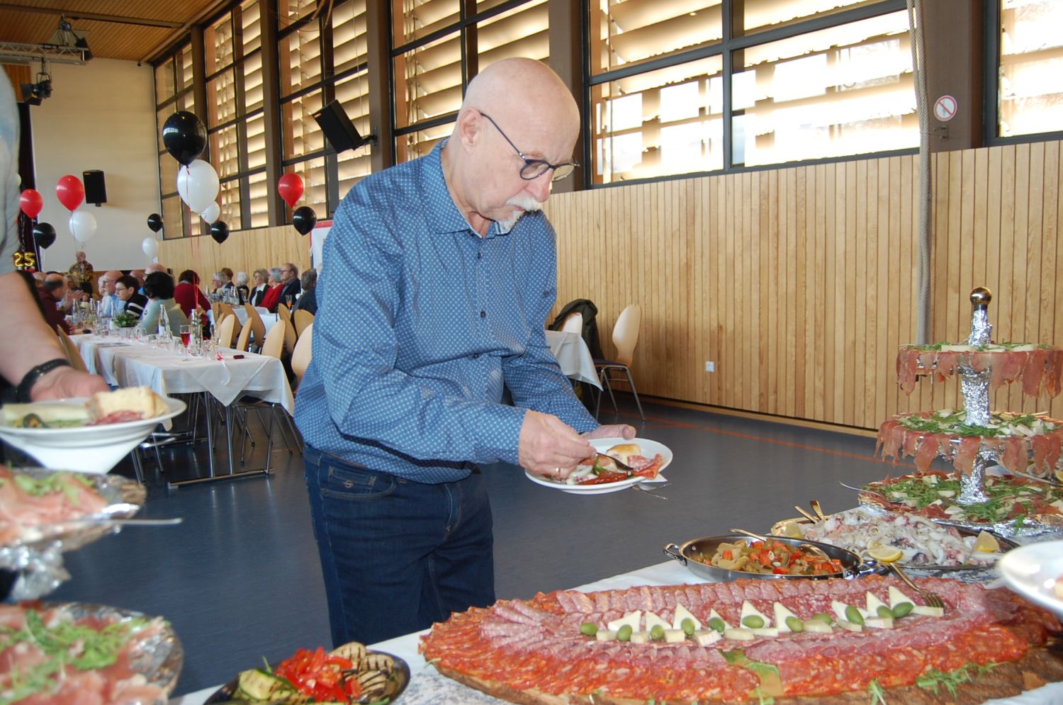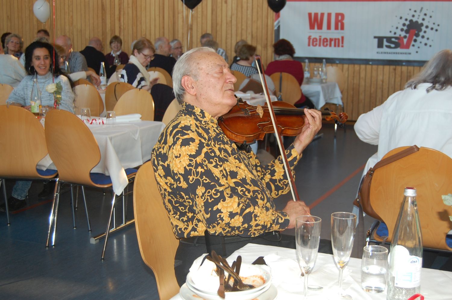 Vorstand Kleinbrahm stellte dann mit Familie Blunda die neue Pächterfamilie des Vereinsheims vor, die mit einem tollen italienischen Büfett sprichwörtlich Appetit auf mehr machte und gelungene Eigenwerbung betreiben konnte. Die lang ersehnte Wiedereröffnung des Vereinsheims ist für Ende Januar vorgesehen. Für die musikalische Unterhaltung sorgte der leidenschaftliche Geiger und Sänger Vio, der künftig auch im Vereinsheim öfter aus seinem umfangreichen Repertoire alle Register ziehen wird.