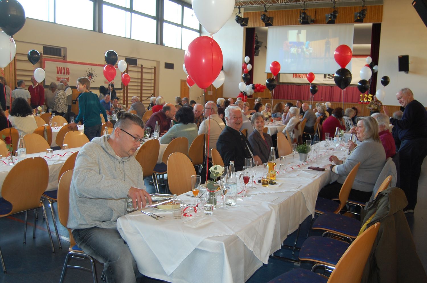 125 Jahre nach dem Gründungstag lud die Vorstandschaft des TSV alle Mitglieder, die sich in den letzten 25 Jahren für den Verein engagiert haben, zu einem Empfang in die toll dekorierte Mehrzweckhalle ein.