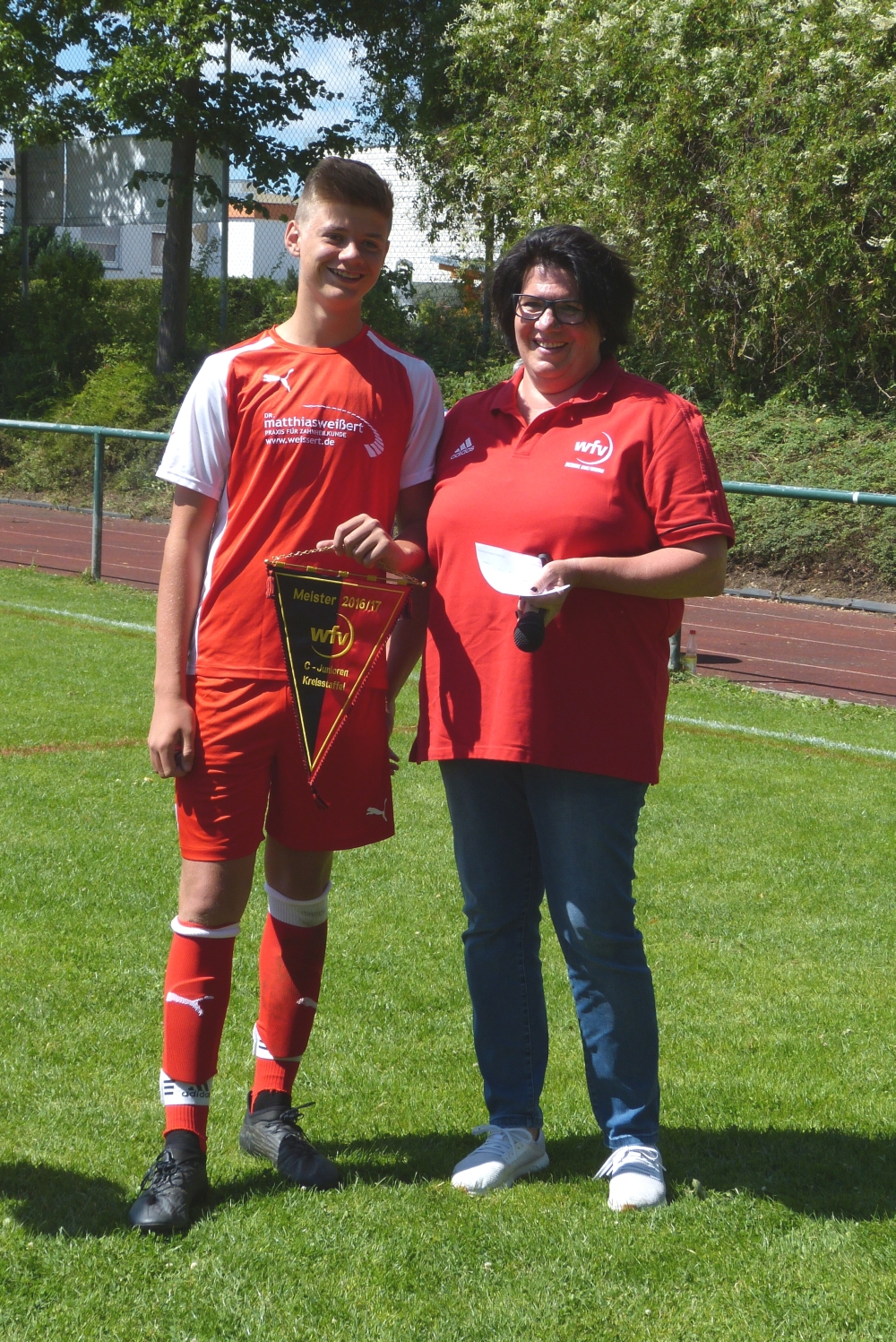 Im Rahmen des C-Juniorenturniers überreichte Staffelleiterin Dagmar Gora den C-Junioren den Meisterschaftswimpel.