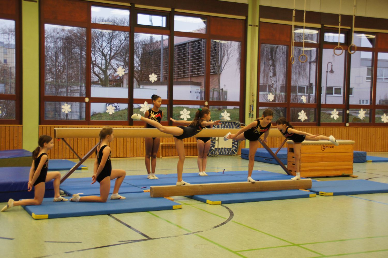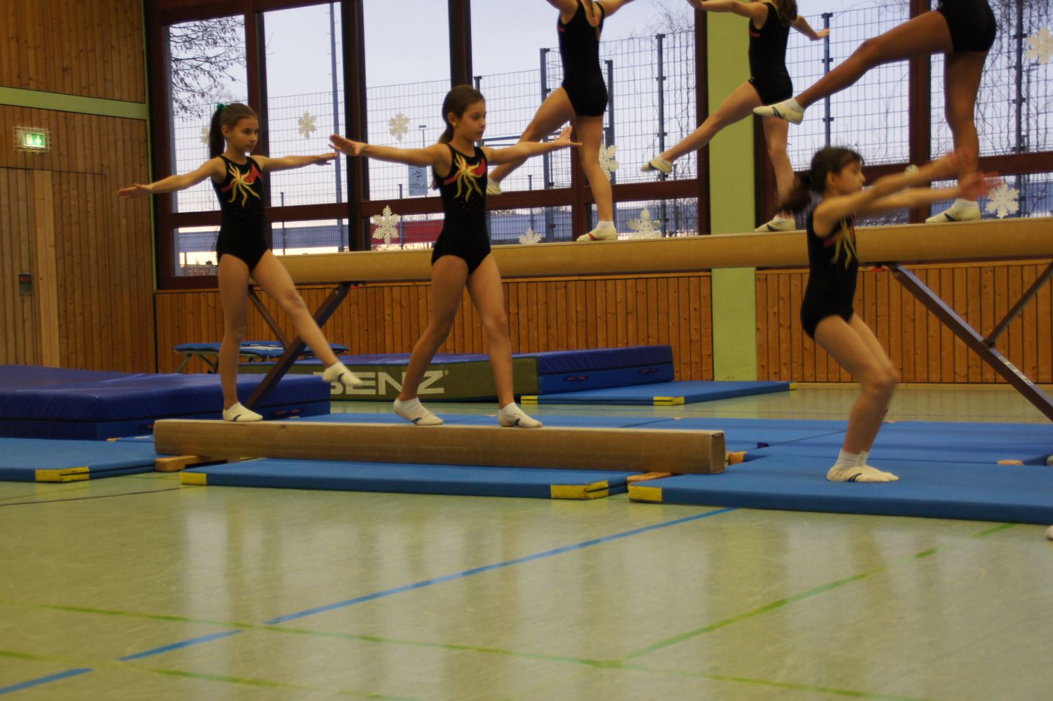Am Schwebebalken wurden durch die Turnerinnen der D und C Jugend einzelne