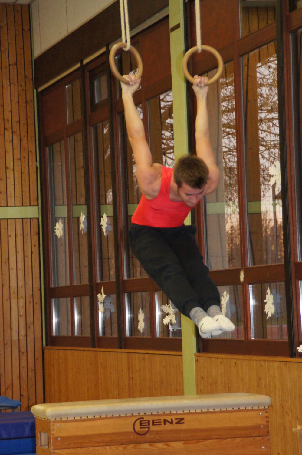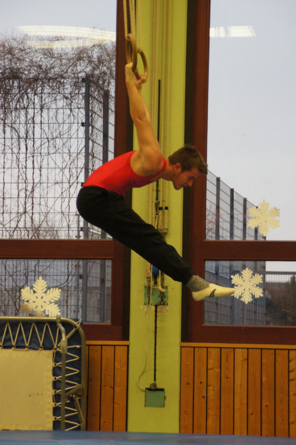 perfekte Übung an den Ringen. Es wurden Elemente aus den Wettkampfübungen