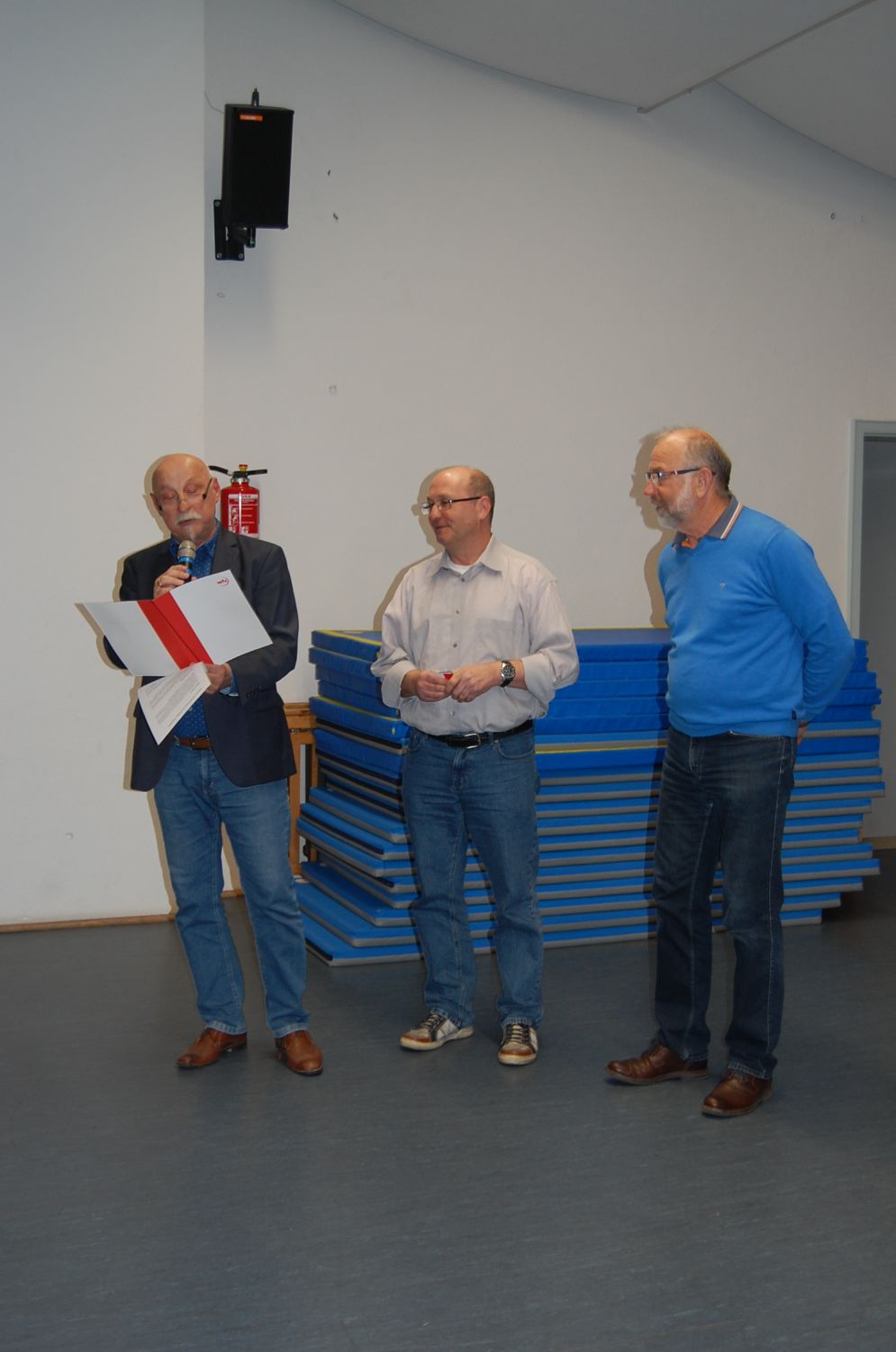 Für ihre ehrenamtliche Tätigkeiten im Verein wurden , Heinrich Seidel, bisheriger 2. Vorsitzender, Andrea Reimer, Pressewartin und Peter Bässler, Protokollant mit einem Präsent geehrt. Sie scheiden zum neuen Vereinsjahr aus ihren Ämtern aus.