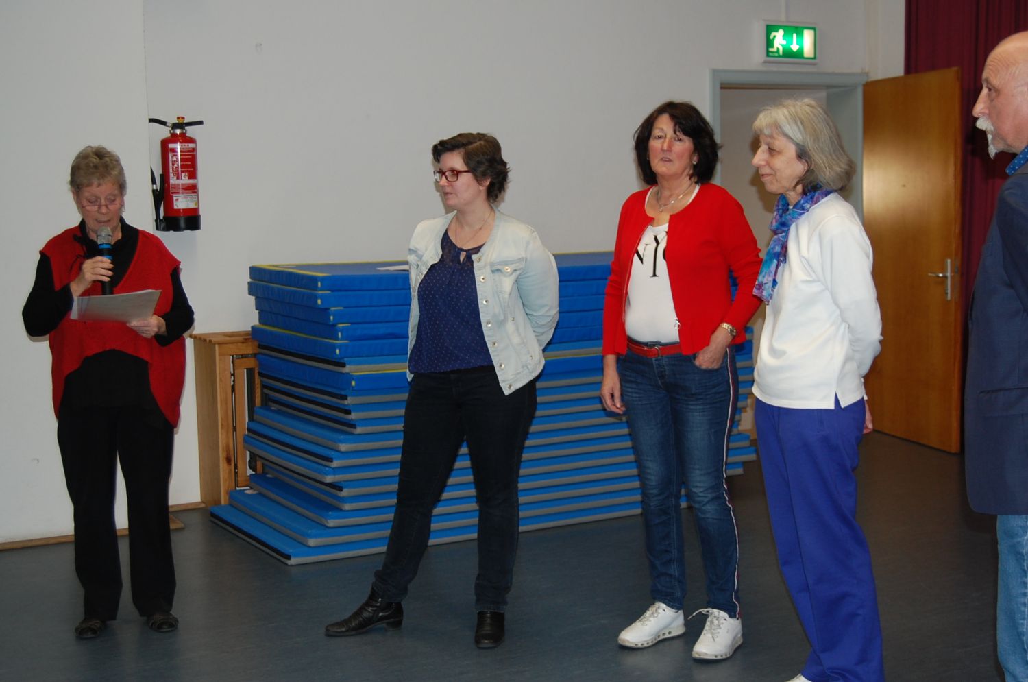 Frau Bärbel Vorrink, Präsidentin des Turngau Neckar Enz durfte folgenden Mitgliedern zu ihren Ehrungen gratulieren und überreichte die Ehrennadel des STB in Bronze an Karin Auer und Melanie Schneeweis. Die Ehrennadel des DTB in Bronze erhielt Martina Jäger.