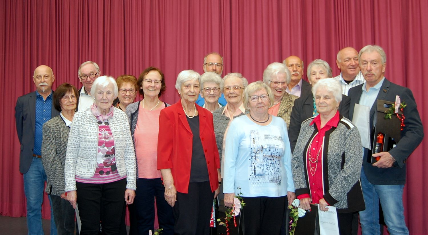 Insgesamt 24 treue Mitglieder durften zum Teil auch in Abwesenheit mit der goldenen Ehrennadel für 50 Jahre Mitgliedschaft mit Verein geehrt werden. Erika Baumann, Sigrid Bilger, Loni Buch , Erika Baumann, Sigrid Bilger, Loni Buch, Sieglinde Eschrich, Alfred Essich, Erna Frank, Marga Gänzle, Marga Hennige, Kurt Hörer, Sieglinde Kiefer, Heide Klinge, Günter Kusterer, Maria Mocker, Gretel Müller, Helga Pfeiffer, Gerhard Reiber, Erika Schwarz, Erika Schock, Doris Seemüller, Helmut Tweraser, Rita Xander , Hannelore Xander, Ingrid Zucker und Magdalena