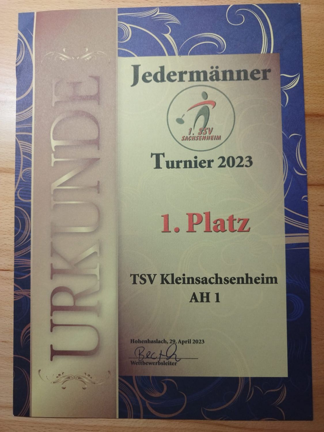 Fußball - AHDie AH des TSV Kleinsachsenheim belegte bei dem Jedermann -Turnier mit einer starken Mannschaftsleistung den ersten Platz.