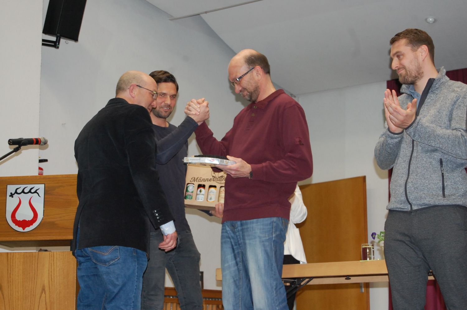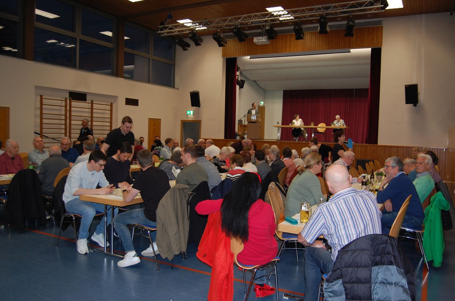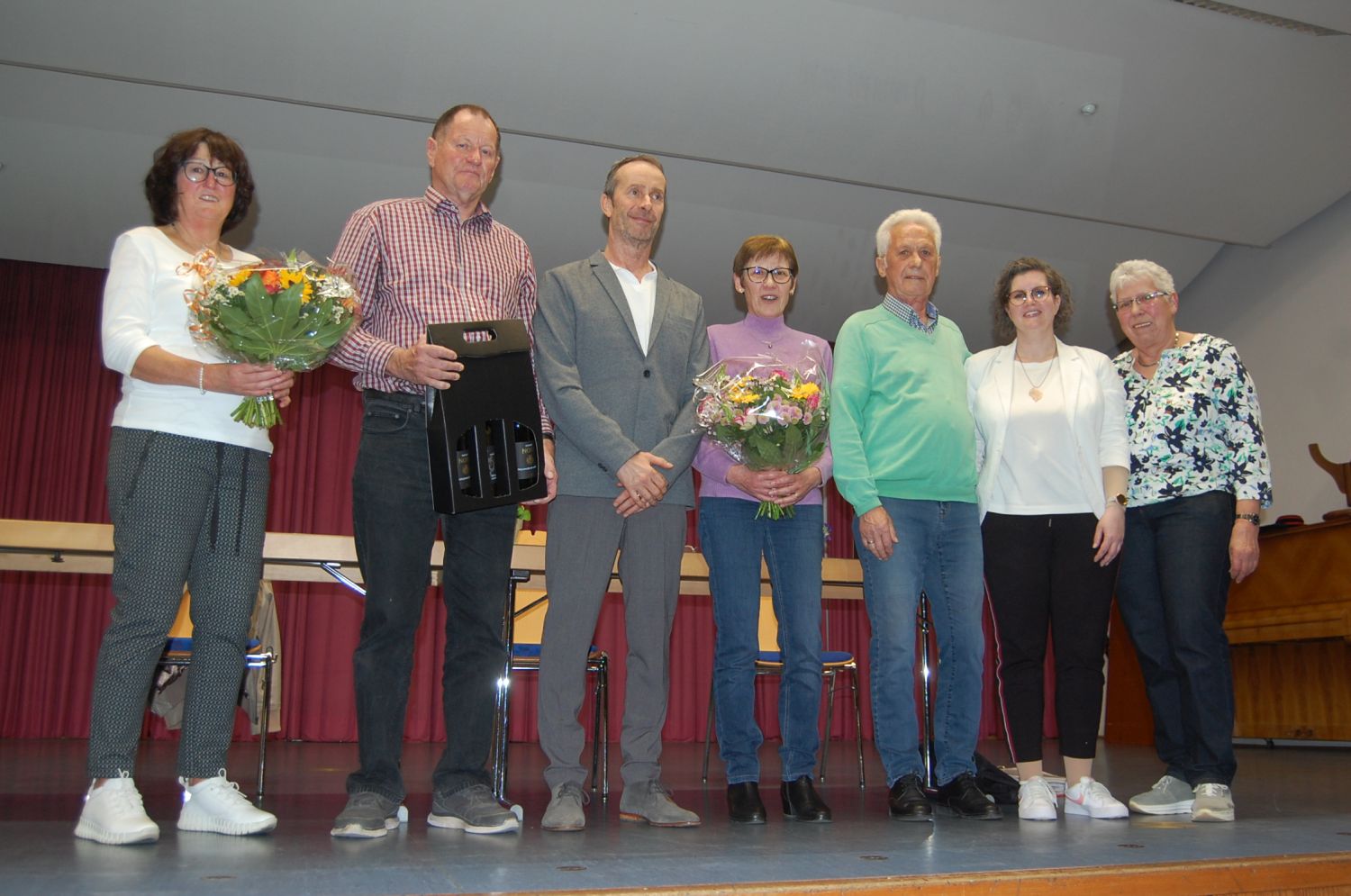 Vorsitzender Elmar Kleinbrahm nahm die Verabschiedung langjähriger Funktionäre und Mitarbeiter vor und konnte Monika Oetinger (Frauenvertreterin), Erich Gorbach (Platzwart), Martina Jäger (Betreuung Geschäftsstelle), Ehrenmitglied Bernhard Wycisk (zuletzt Seniorenvertreter) und die verhinderte Regine Dagenbach (Leitung Geschäftsstelle) mit einem Präsent verabschieden. Ebenfalls mit einem kleinen Präsent wurde die Wirtsfamilie Djirlic, die Ende April in den Ruhestand geht, verabschiedet.