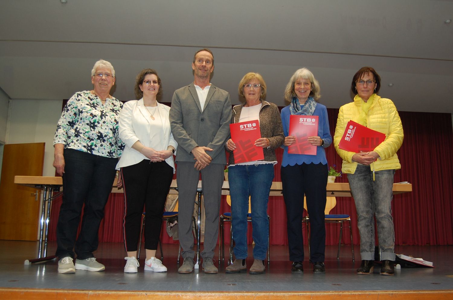 Zur jährlichen Mitgliederversammlung konnte Vorsitzender Elmar Kleinbrahm Mitglieder aller Abteilungen in der Mehrzweckhalle begrüßen, die ein Heft mit Berichten der Abteilungen und Gruppen erhielten. Nach der Totenehrung, der im vergangenen Vereinsjahr verstorbenen Mitglieder standen die Ehrungen der Fachverbände auf der Tagesordnung. Für den Turngau Neckar-Enz nahm stellvertretend Schriftführerin Ingrid Müller die Ehrungen vor. Mit der Gauehrennadel in Silber konnte Carola Hecht ausgezeichnet werden. Melanie Schneeweis, zweite Vorsitzende des Vereins, erhielt die Ehrennadel in Bronze des DTB überreicht, während Martina Jäger die Ehrennadel des STB in Silber erhielt. Eine Ehrenurkunde für langjährige Übungsleiter-Tätigkeiten erhielten Karin Auer (31 Jahre Yoga-Übungsleiterin), Waltraud Walther (45 Jahre Übungsleiterin Frauenturnen), Monika Bopp (45 Jahre Übungsleiterin und über 30 Jahre Abteilungsleiterin Frauenturnen). Die Ehrungen für die verhinderten Wolfgang Pfeiffer (35 Jahre Übungsleiter bei den Jedermännern) und Sieglinde Eschrich (55 Jahre Übungsleiterin Frauenturnen) werden nachgeholt.