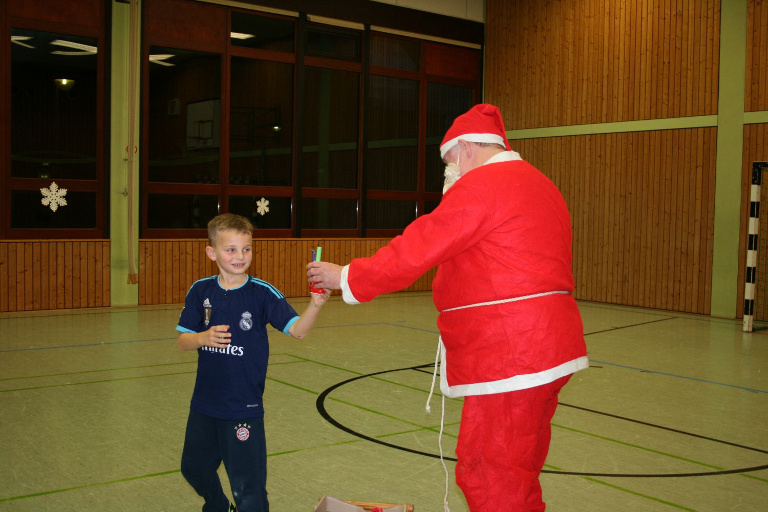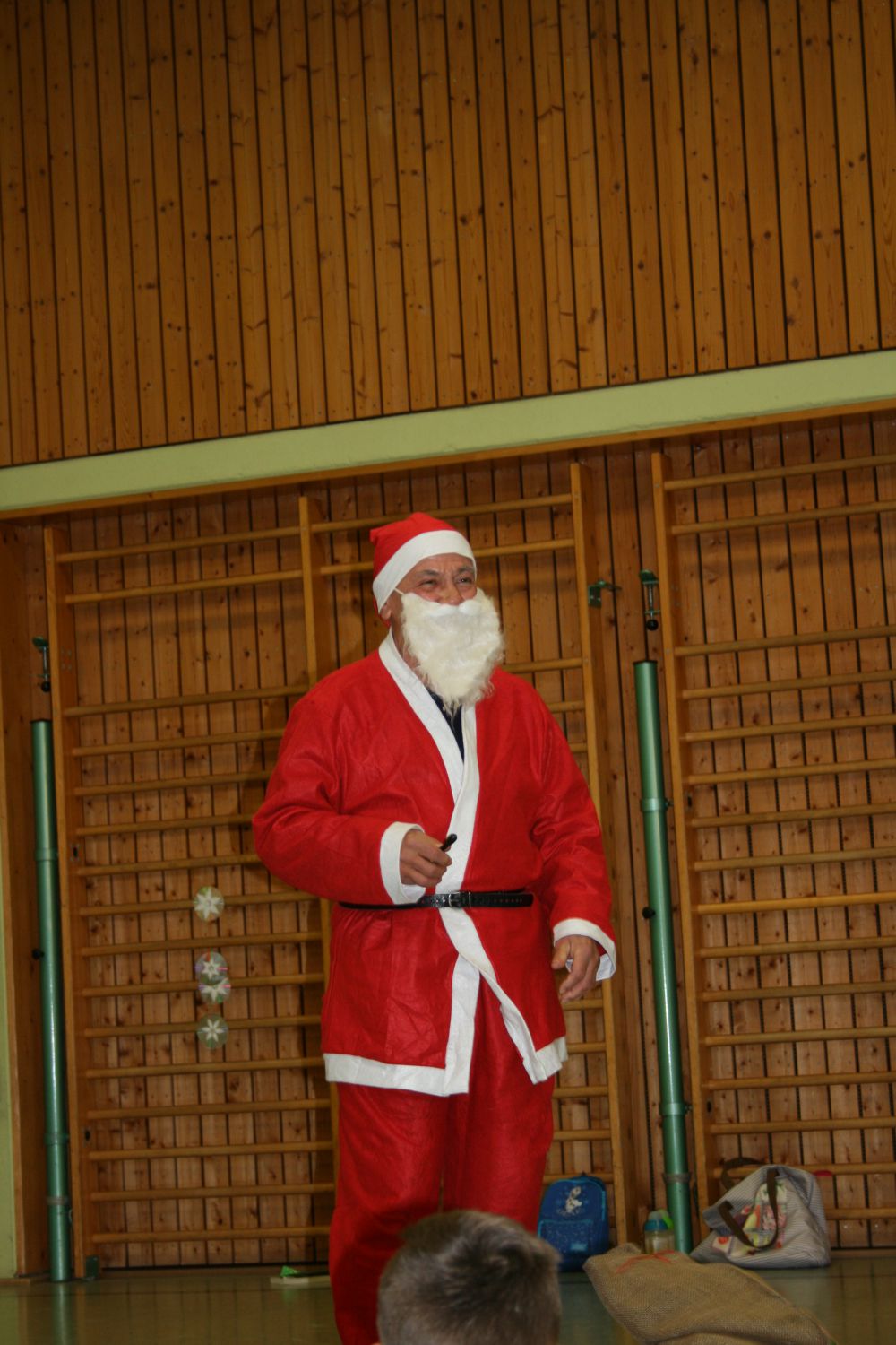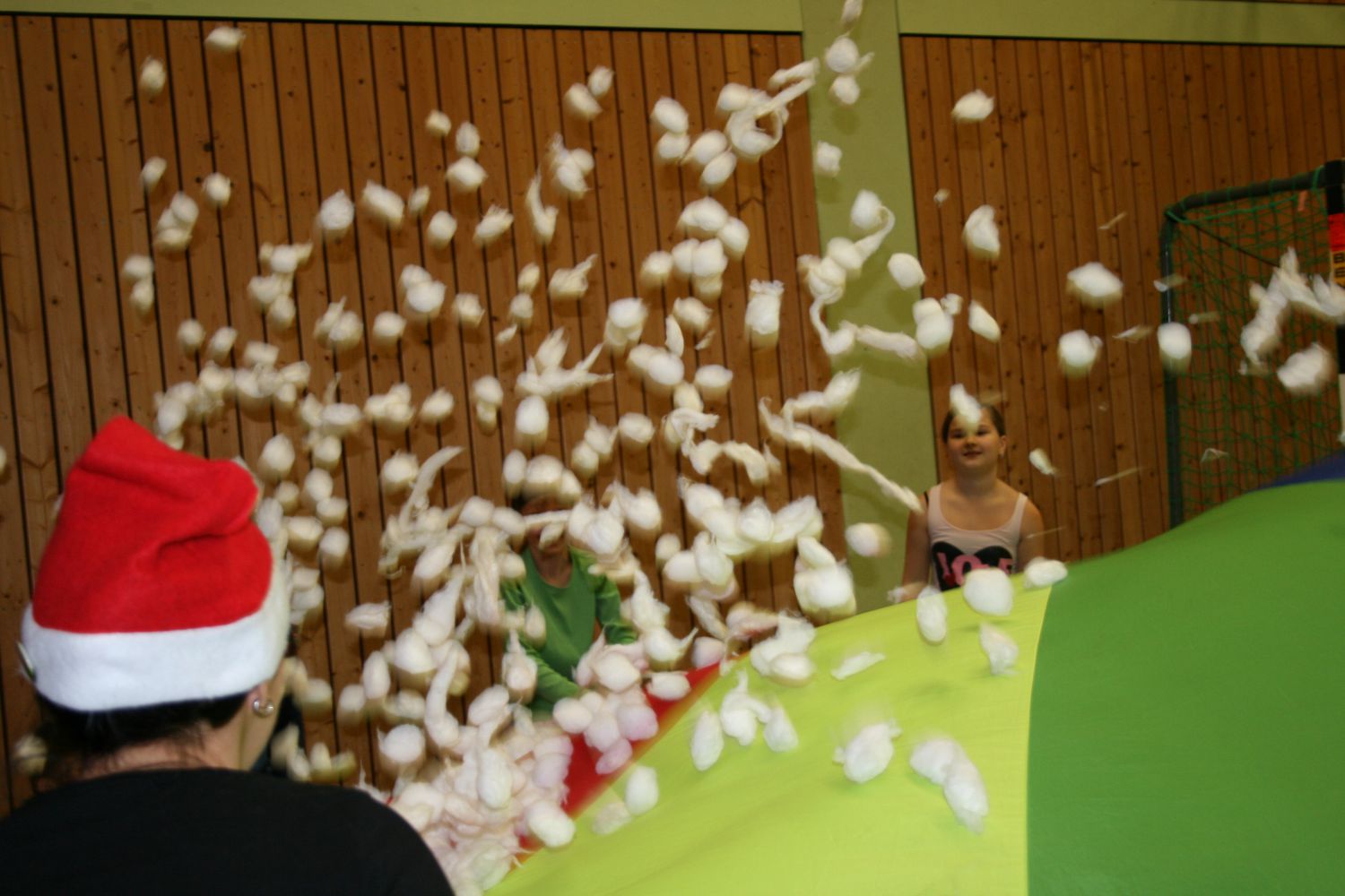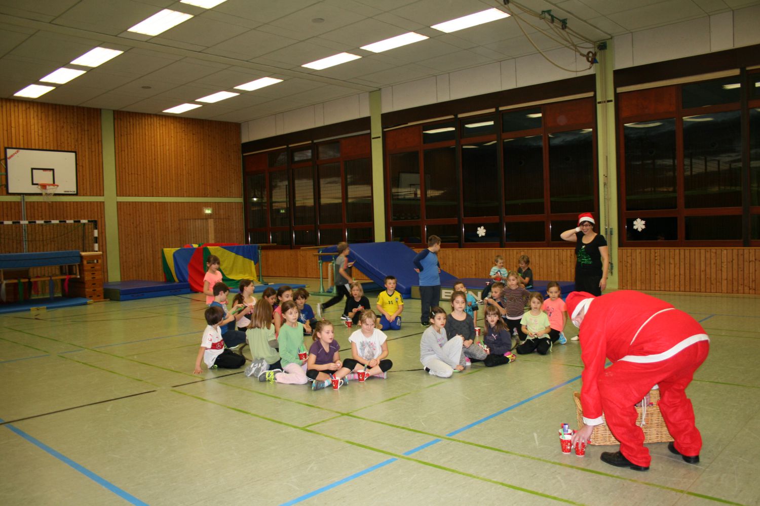 Beide Gruppen erhielten Post vom Weihnachtsmann, der um Ihre Hilfe bei den Weihnachtsvorbereitungen bat. So mussten Sterne gesammelt, Schneeflocken gewirbelt und Rentiere eingefangen werden. Gemeinsam wurde das Kriechen durch den Schornstein und das Rutschen von den vereisten Dächern geübt . Bei so viel Unterstützung durch die Turnkinder ließ sich der Weihnachtsmann nicht lumpen und kam am Ende der Feier jeweils noch persönlich vorbei und überreichte jedem Turnkind eine kleine Überraschung. Als kleines Dankeschön schmetterten die Kinder noch ein lautstarkes Lied von der Weihnachtsbäckerei und wurden von den beiden Trainerinnen in die Weihnachtsferien entlassen.