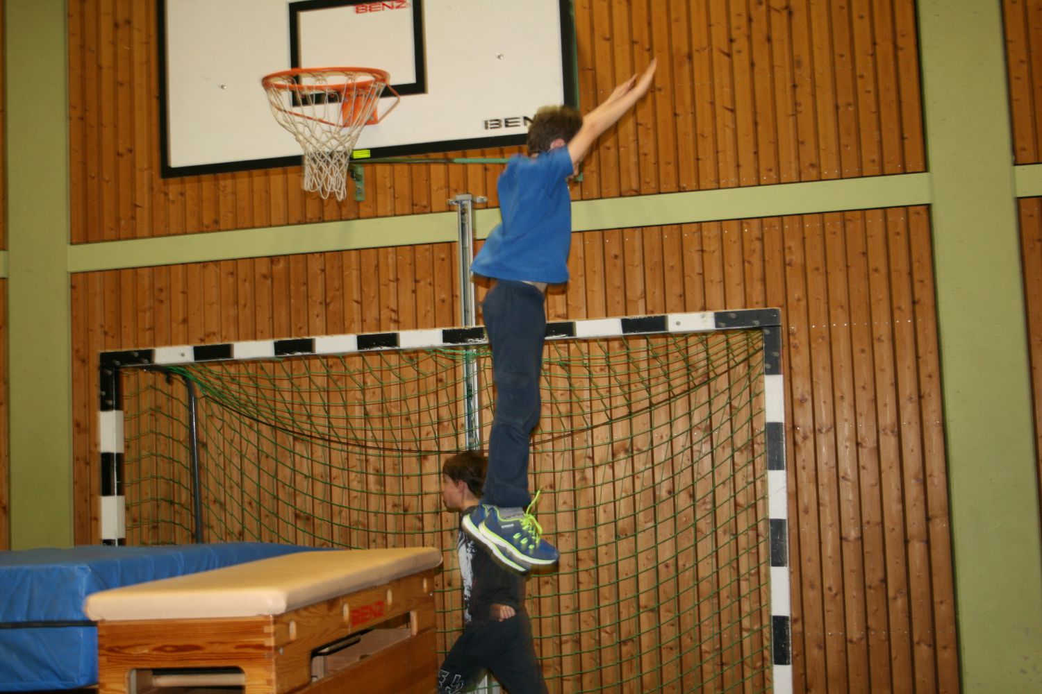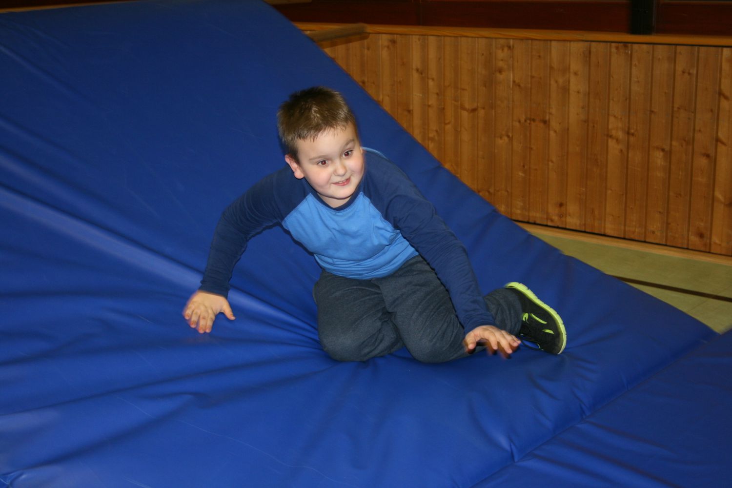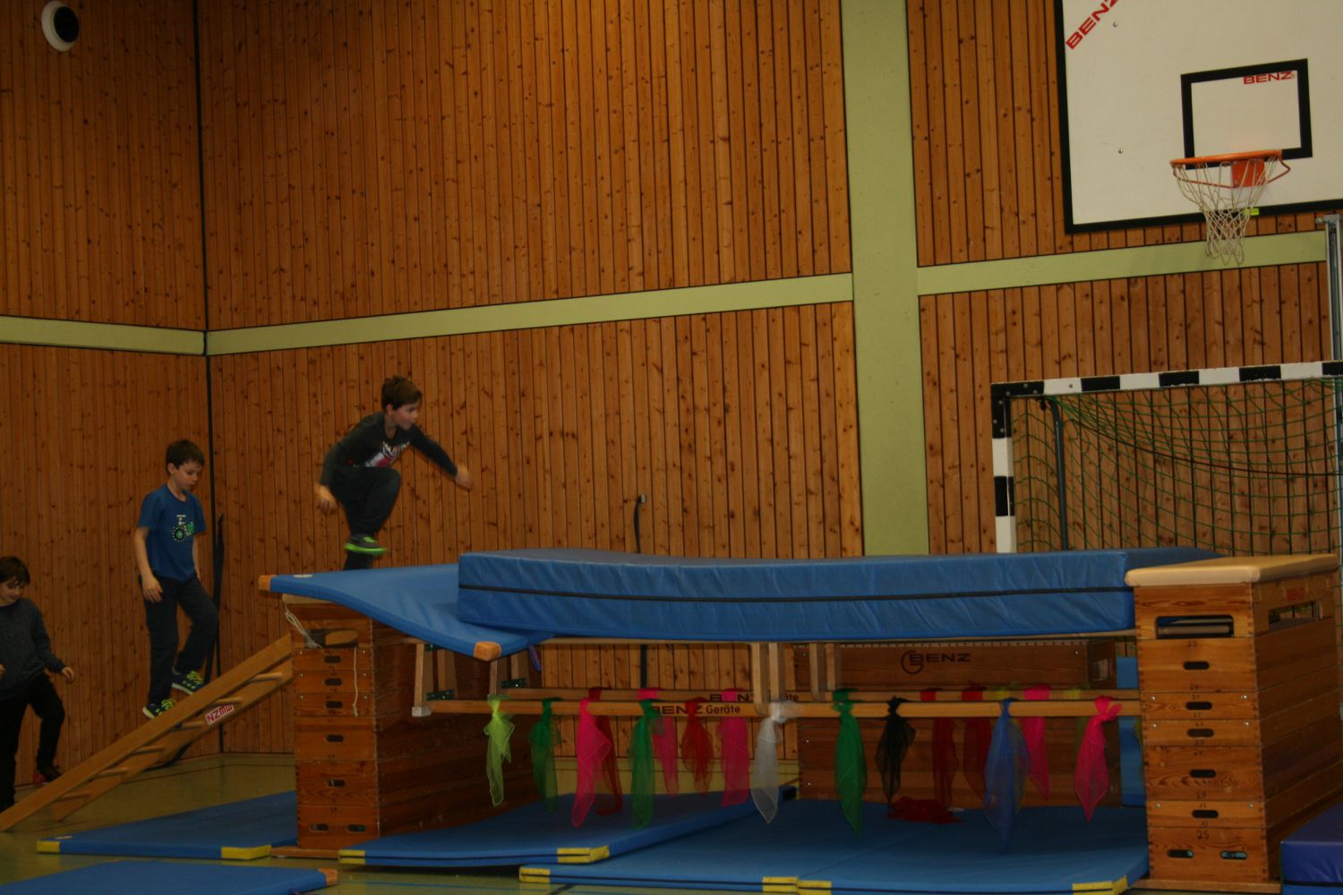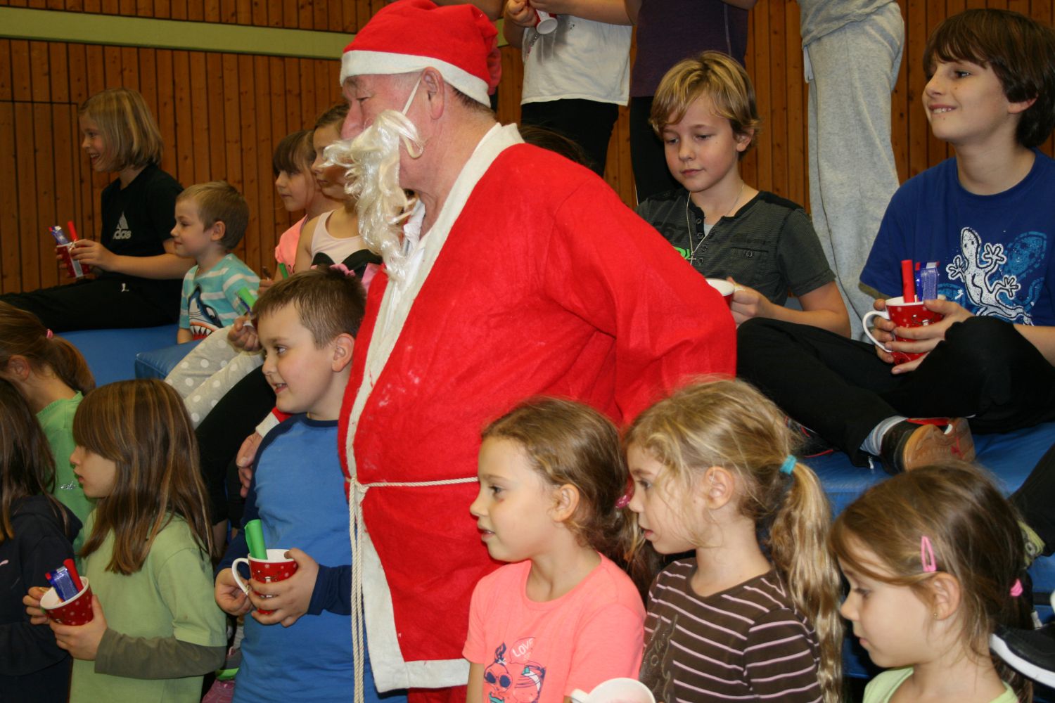 Beide Gruppen erhielten Post vom Weihnachtsmann, der um Ihre Hilfe bei den Weihnachtsvorbereitungen bat. So mussten Sterne gesammelt, Schneeflocken gewirbelt und Rentiere eingefangen werden. Gemeinsam wurde das Kriechen durch den Schornstein und das Rutschen von den vereisten Dächern geübt . Bei so viel Unterstützung durch die Turnkinder ließ sich der Weihnachtsmann nicht lumpen und kam am Ende der Feier jeweils noch persönlich vorbei und überreichte jedem Turnkind eine kleine Überraschung. Als kleines Dankeschön schmetterten die Kinder noch ein lautstarkes Lied von der Weihnachtsbäckerei und wurden von den beiden Trainerinnen in die Weihnachtsferien entlassen.