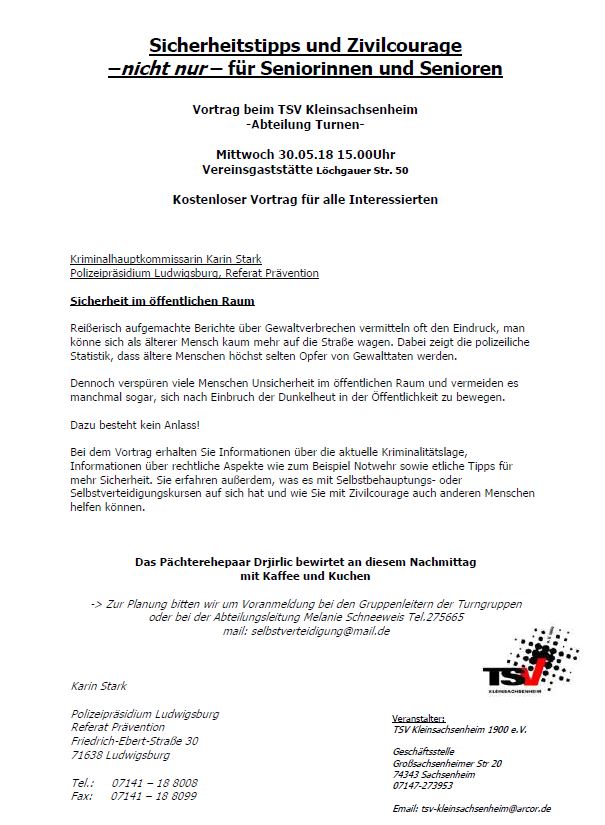 Sicherheitstipps + Zivilcourage - Vortrag beim TSV